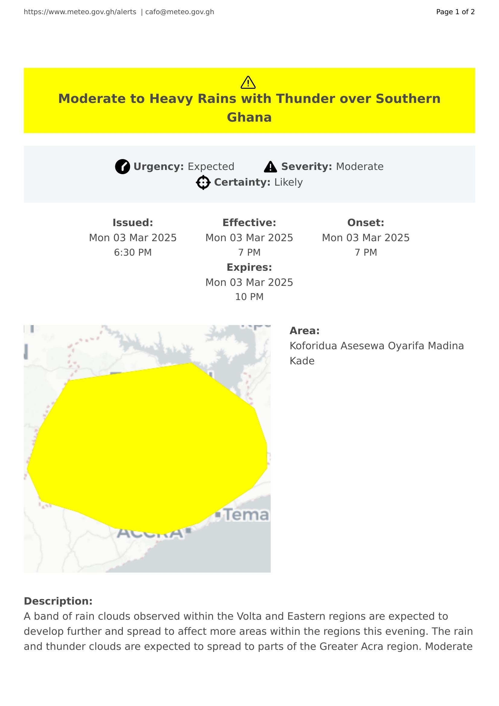 Rain and Thunder within Eastern, Volta and Greater Accra regions
