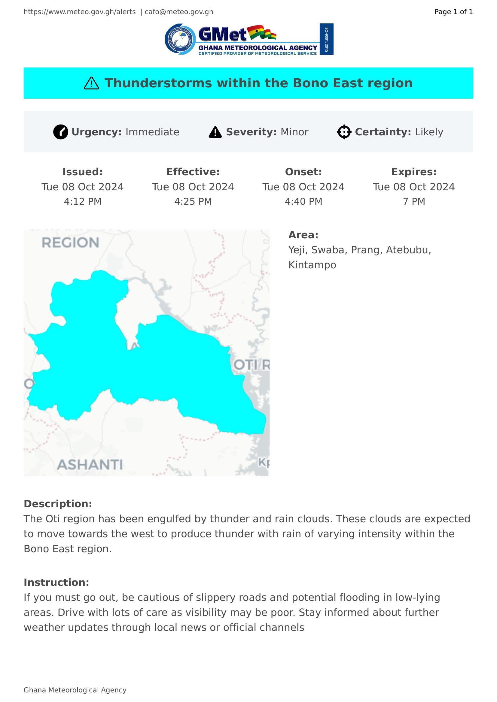 The Oti region has been engulfed by thunder and rain clouds. These clouds are expected to move towards the west to produce thunder with rain of varying intensity within the Bono East region.