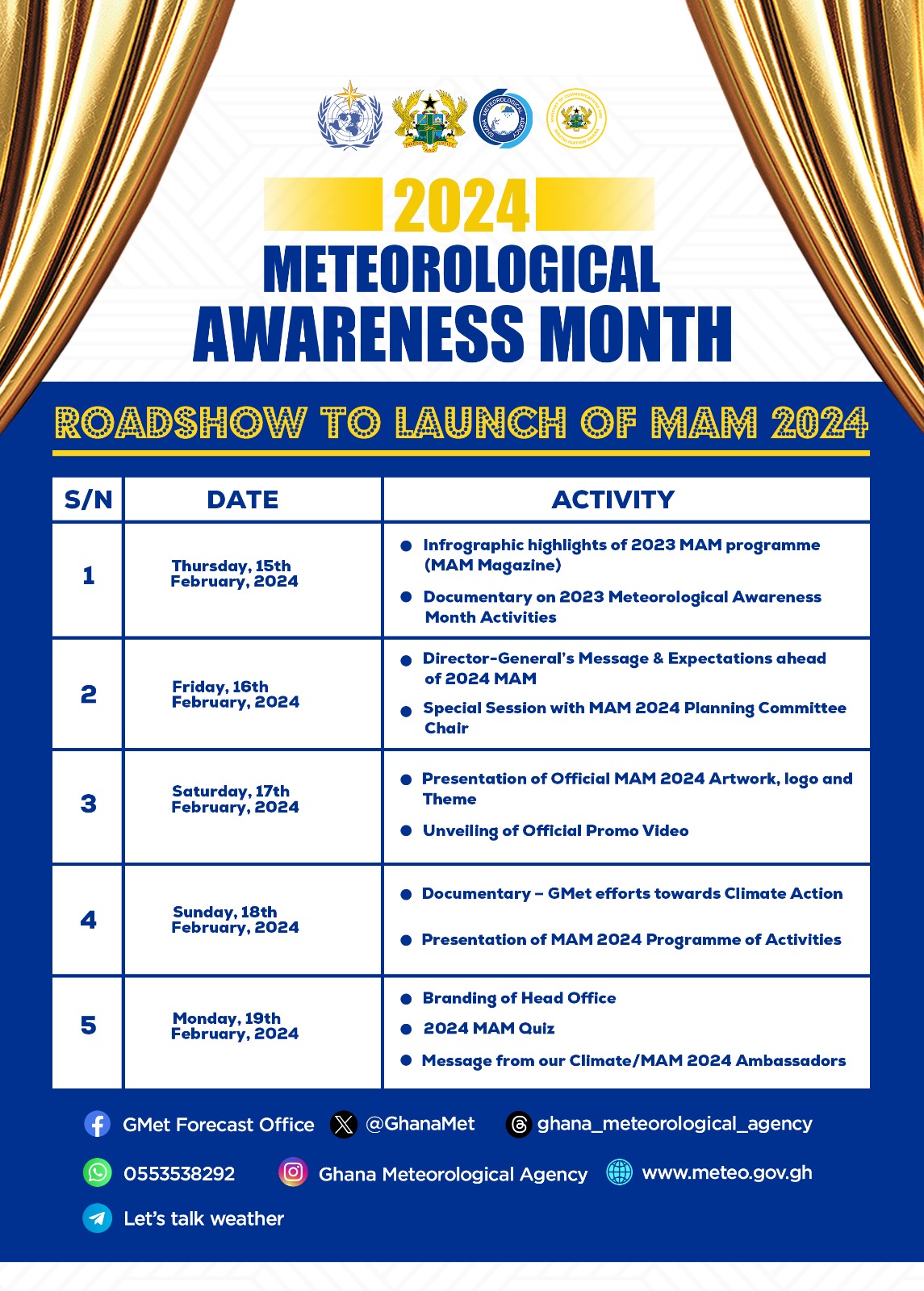 Join us on the Roadshow to the launch of the Meteorological Awareness Month from tomorrow the 15th of February 2024 as we highlight the activities we have lined up to the big launch on the 1st of March 2024.