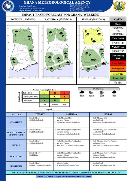 Mostly Cloudy conditions expected for the weekend with intermittent slight rain or drizzle conditions